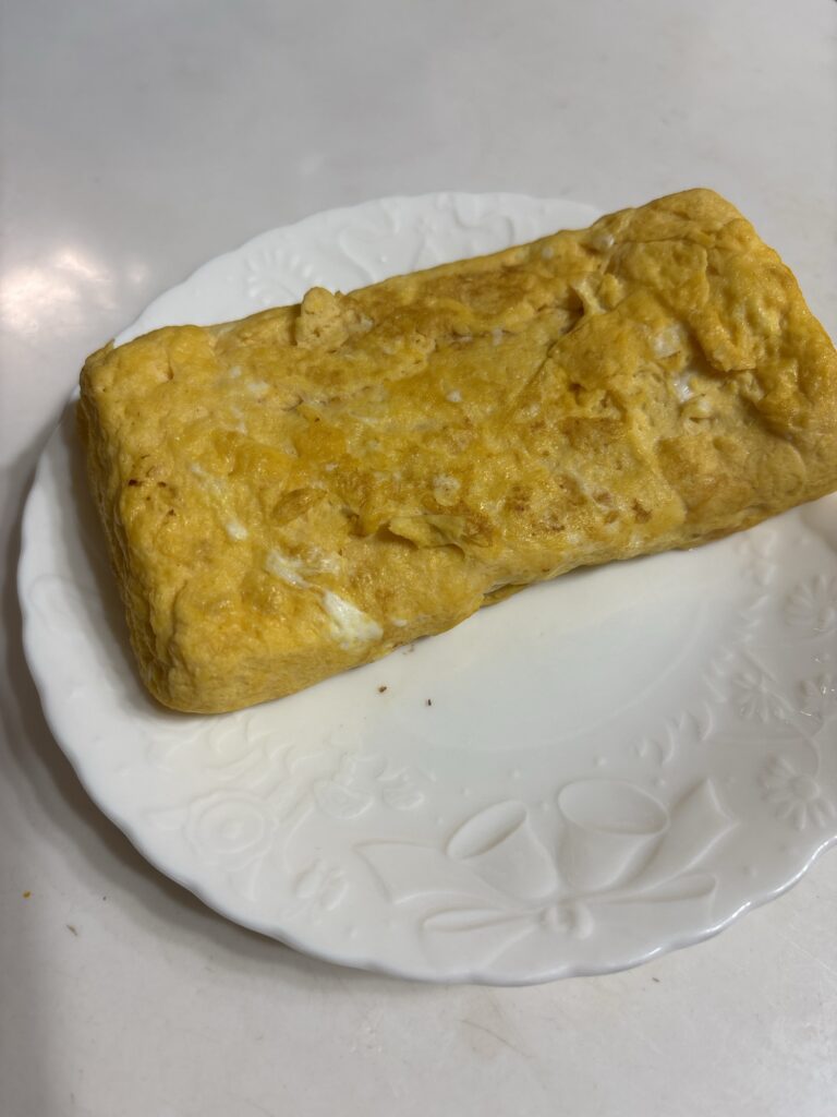 我が家では次男が料理を手伝うのが好きで、今日はだし巻き卵です。うーん、おいしそう!とても上手に作れました!