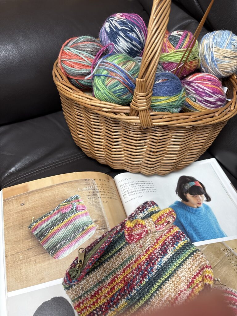 オパールの毛糸でマルティナさんの靴下を編むと、ちょっとずつ毛糸が余ります。そうしたら、今度は小物をつくります。これもまた幸せ!