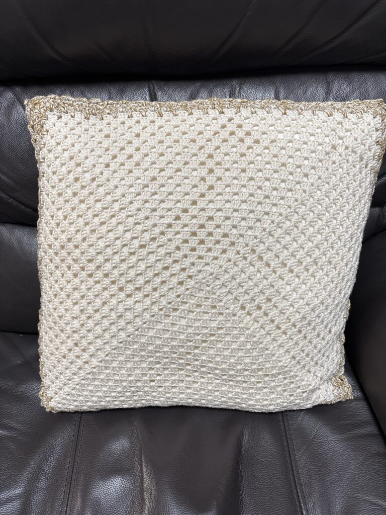 シルク入りの肌触りの良い糸は、クッションカバーにしてみたら、お昼寝にピッタリ!